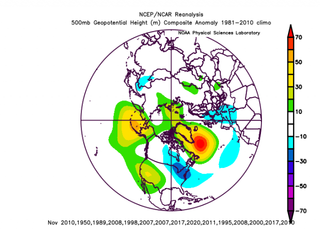 In those 14 seasons, 20 Major hurricanes hit the US and December had a lot of cold in at least a part of the eastern US. More importantly, the entire winter tended to turn out cold. So the implication are, if you nail the cold May and then the high impact season behind it, you have a tool that can see almost 9 months down the road for winter. How does that happen? The global pattern that sets up that kind of a cold May can indicate that the big impact season is coming (this has been discussed in our preseason hurricane forecasts) and then left to its own accord—if it is moving along naturally, the result is the colder look for winter.