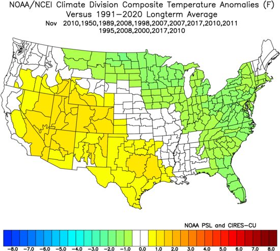 Last year we had this in December. There is the cool admittedly in the southeast, but still there (looked more el nino-ish):