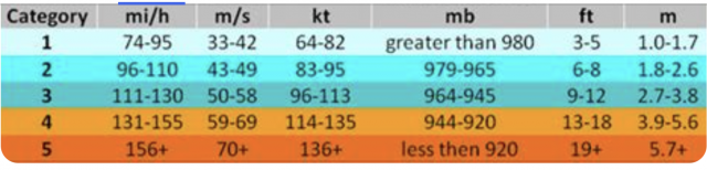 So I respect the Saffir-Simpson scale and use pressure and wind as an input.