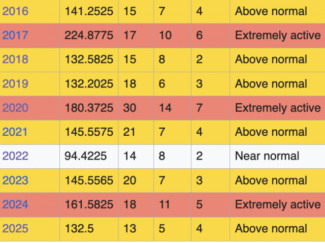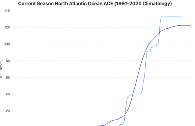 First of all, and I reviewed this earlier, the centering of the ACTUAL HIGHEST ACE RELATIVE TO AVERAGE this year wound up about 350 miles east/northeast of what we had as our idea. I have stated that the whole numbers game adds up to nothing; it’s who gets hit that really counts. But the numbers game is what everyone focuses on. It’s like pickleball to real tennis to me. So, our impact forecast was overdone for the U.S., unlike last year, which was issued further out. The reason is simple. I thought the congregation of tracks would be further west. Even with that, the amount of damage from non-named storms and the ones offshore to the beaches was quite high. North Carolina had 16 houses fall into the sea. In 2011, when Category 2 Irene hit the NC coast, only six houses fell into the sea. So the unnamed storms, one of them that should have been named, did their dirty work this year