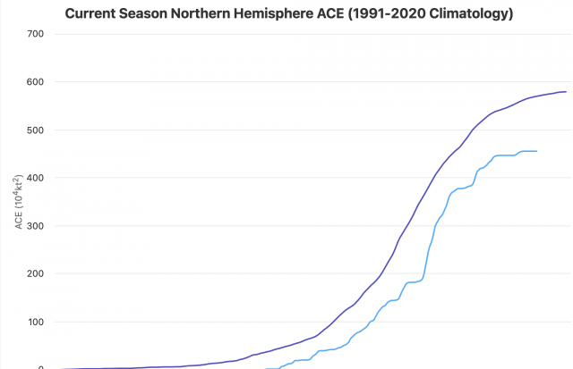 The charts below are National Hurricane Center/Joint Typhoon Warning Center data as tabulated by Colorado State University.