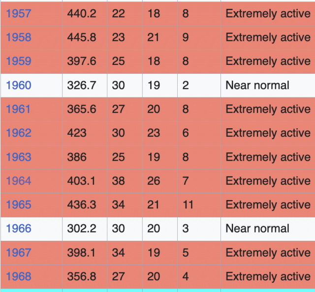So when we look at the Atlantic with the highest 10-year period ACE index wise, it leads to the hysteria over climate change. The Atlantic ACE averages 122.5 per year, so this is an impressive stat as a stand-alone. Problem is, the average ACE/storm is over 2 per storm under the 1950s, which means the average storm is weaker. Fewer storms were named in the 1950s, but, on average, were stronger. So when a dime-sized feedback storm goes wild, the screams of “storms are getting stronger” should be muffled by a look at past years (and adapting our power and impact scale where size matters).